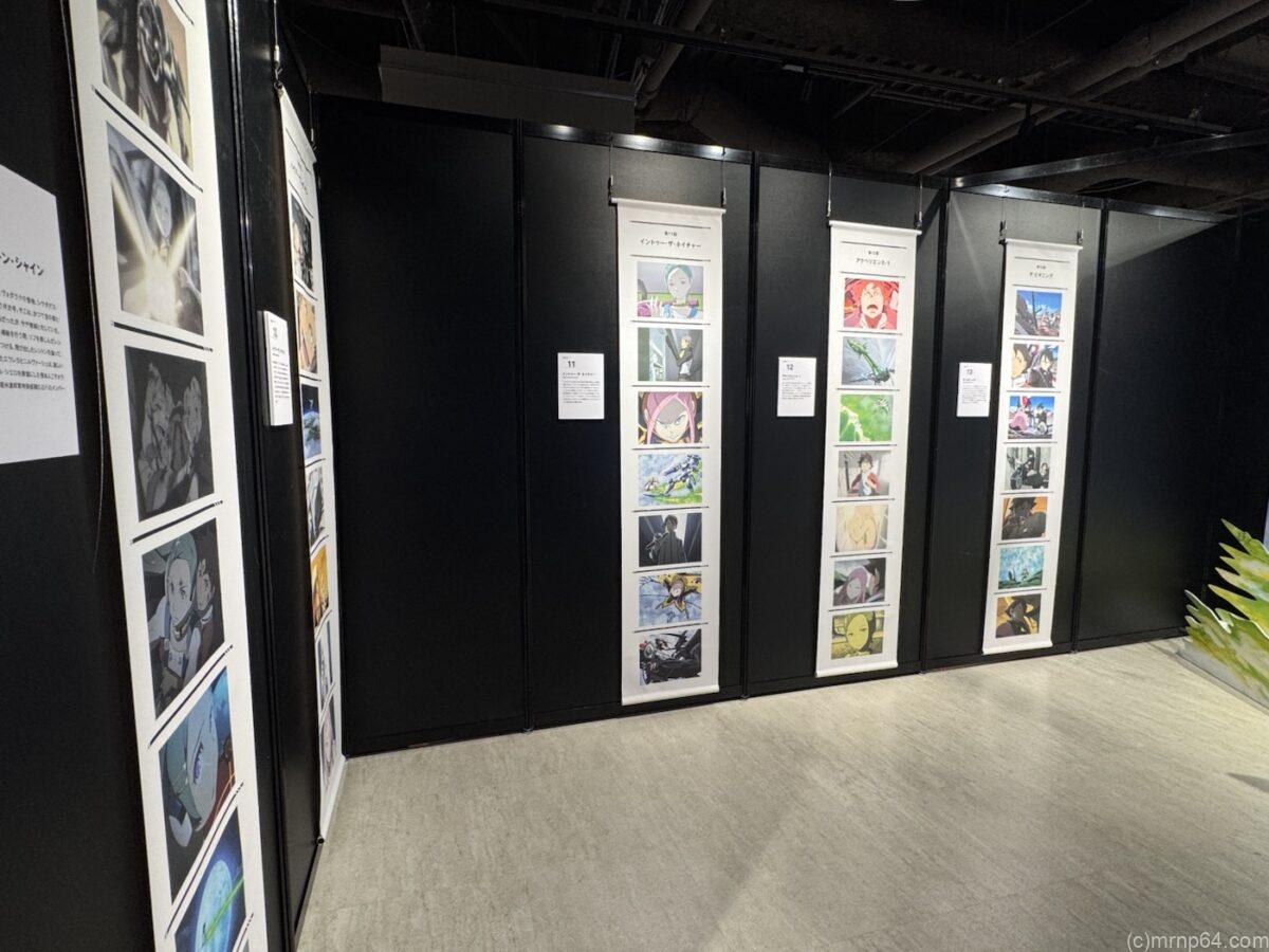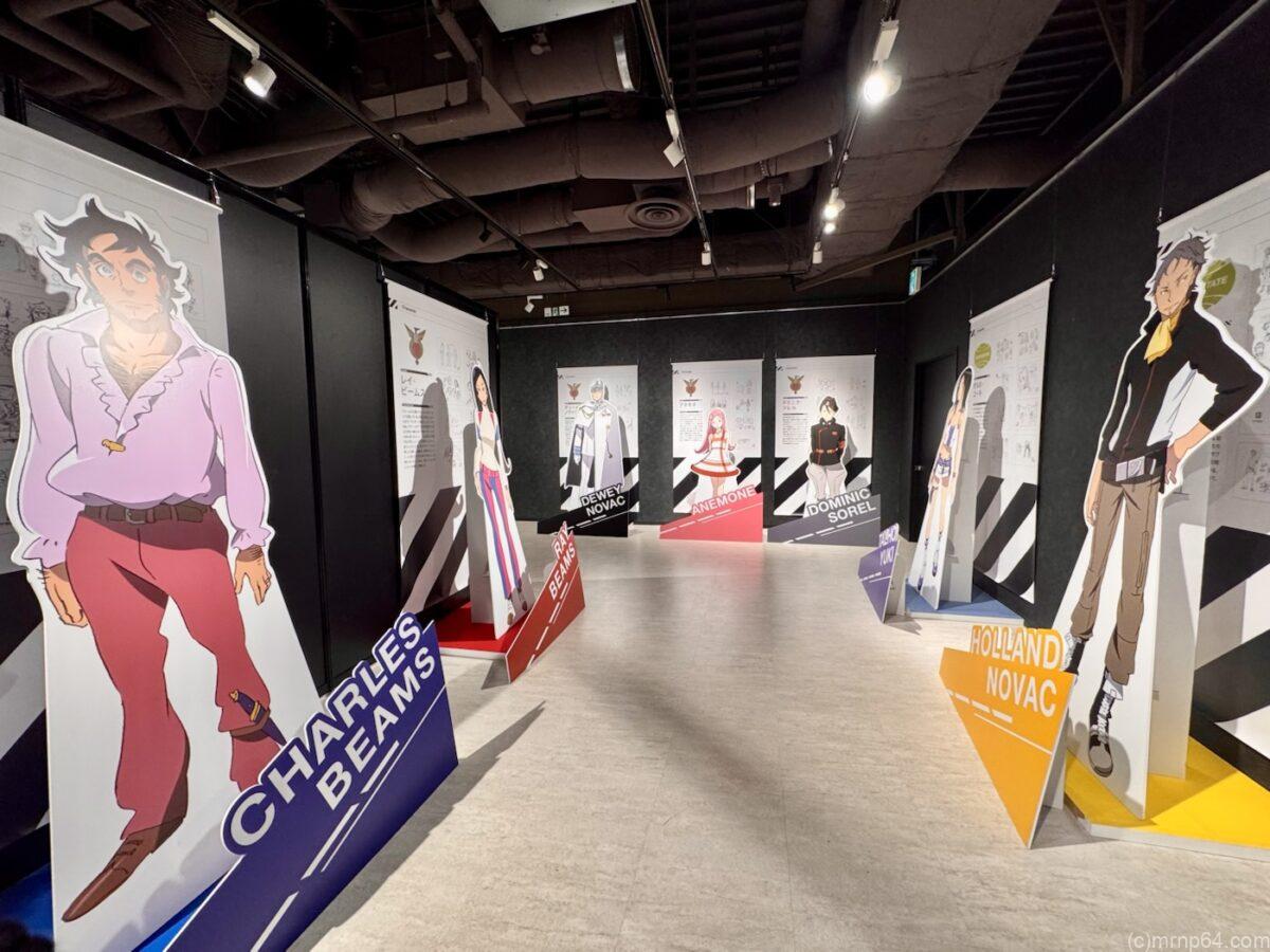 展示はキャラクター紹介と、アニメシリーズのストーリーとかコマがズラーっと並んでいたり。