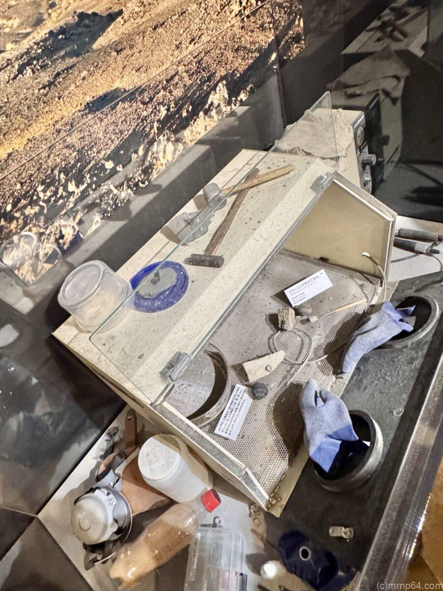 液浸標本を袋越しに触れるコーナーもあり、ワニを触れる…すごい…恐竜だ…