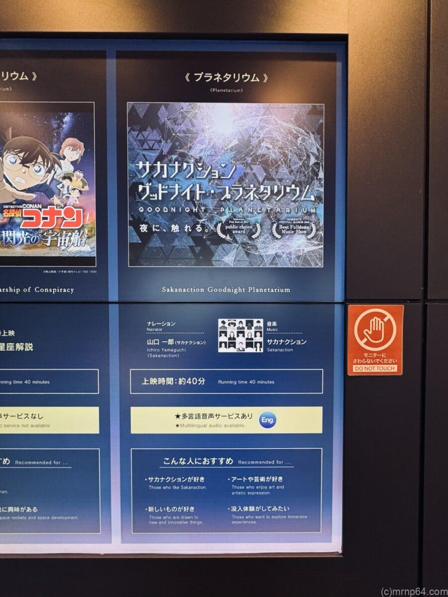 想像していたプラネタリウム(星を見ながらBGMがサカナクションで、解説流れるイメージ)と違って、もっと映像とかにも星以外の動きがあって楽しい。